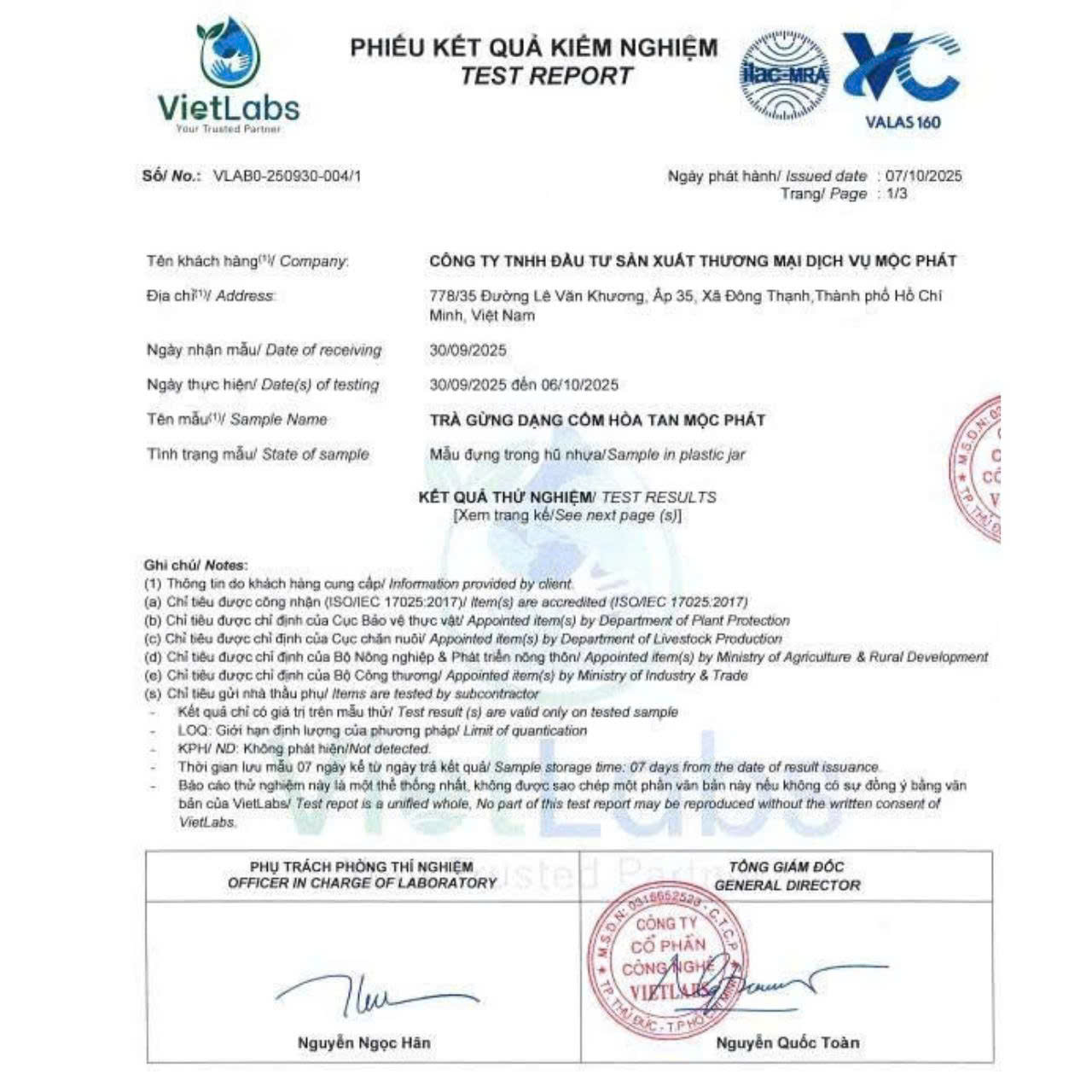Mộc Phát với cam kết mang đến những sản phẩm an toàn, chất lượng và minh bạch cho người tiêu dùng, chúng tôi tự hào đạt được các chứng nhận kiểm nghiệm và đánh giá từ những đơn vị uy tín. Đây là minh chứng cho quy trình sản xuất nghiêm ngặt, nguồn nguyên liệu đạt chuẩn và sự tận tâm trong từng sản phẩm mà Mộc Phát gửi đến khách hàng.